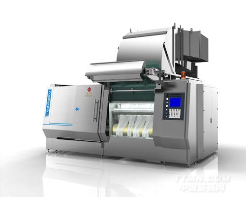 循環(huán)備料箱及機內(nèi)軋輥裝置,無需槽體外部脫水,因此該系統(tǒng)可以重復(fù)利用皂液或其它化學(xué)助劑,并將其回收,還可以降低烘干時間?;瘜W(xué)助劑與洗液以強制循環(huán)方式噴淋到織物上,洗滌效率高。與傳統(tǒng)工藝相比,水洗時間縮短70%,噸布用水減少50%,汽耗減少30%。