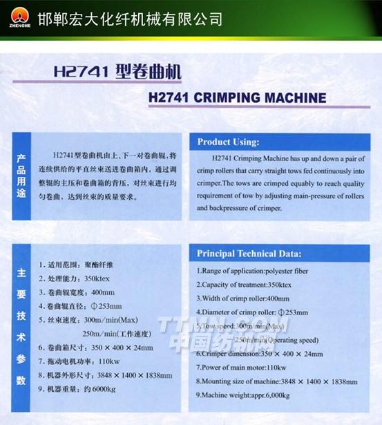 您所在的位置:紡機(jī)網(wǎng) > 產(chǎn)品庫 > HV/HD2741卷曲機(jī)