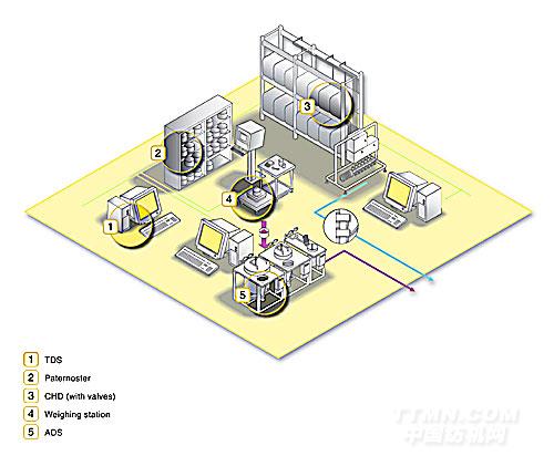 帶條形碼掃描儀的SCALE秤重系統(tǒng)和ADS自動(dòng)化溶解站是粉狀染料和助劑的模塊。下一擴(kuò)充階段是通過平行管路系統(tǒng)的顏料供應(yīng)﹐顏料能透過配方控制的秤量站和自動(dòng)溶化裝置ADS供應(yīng)到分配系統(tǒng)。