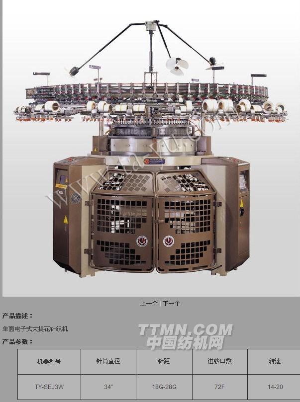您所在的位置:紡機網(wǎng) > 產(chǎn)品庫 > 單面電子式大提花針織機TY-SEJ3W
