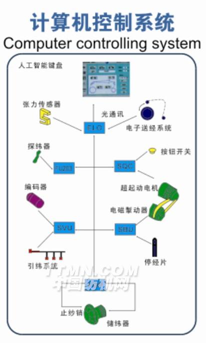 配有人機(jī)界面鍵盤,可以將織機(jī)運(yùn)轉(zhuǎn)狀態(tài)、故障原因、織造工藝參數(shù)及織機(jī)設(shè)定條件等信息顯示在顯示屏中。通過功能鍵方便的輸入各種數(shù)據(jù),還可通過記憶卡將各種設(shè)定參數(shù)長期保存或隨時輸入到其織機(jī)中。