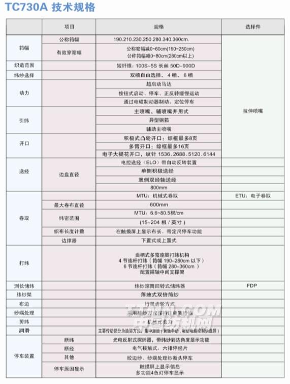 4.電子多臂開口裝置:最多16頁綜框(選配) 適合織造多品種的平紋、斜紋、緞紋和小提花高附加值的織物。