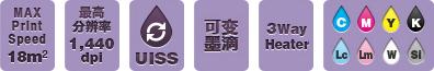 JV33-130A、JV33-160A只能用于水性顏料墨水及水性升華墨水。不能使用溶劑墨水。另外,JV33-130A、JV33-160A沒有搭載介質(zhì)卷取裝置和3WAY智能加熱器。