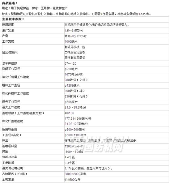 特點:脫脂棉經(jīng)過開松機開松打入棉箱,有棉箱均勻地喂入梳棉機,可配置4臺圈條器,梳出棉條最低達1.5克/米。