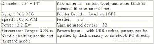 該機配備16個日本W(wǎng)AC選針器,每路2個選針點,用于生產(chǎn)內(nèi)衣、外衣、泳衣、運動衣及保健衣,(可以按要求編織毛圈)。