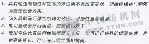 我公司是棉紡平面鋼領(lǐng)的專業(yè)化生產(chǎn)企業(yè),是全球最大的鋼領(lǐng)生產(chǎn)、銷售企業(yè)。產(chǎn)品采用優(yōu)質(zhì)碳素鋼、鈦合金、軸承鋼、高精度軸承鋼等不同材質(zhì),表面處理有光面、鍍鉻、鍍膜、微晶、硫化等多種不同工藝的處理,能滿足客戶的不同使用要求。產(chǎn)品年銷售量達(dá)3500萬(wàn)只左右,國(guó)內(nèi)市場(chǎng)占有率達(dá)30%,居國(guó)內(nèi)同類生產(chǎn)廠家之首,目前已擁有1000多個(gè)國(guó)內(nèi)外棉紡、整機(jī)客戶,并出口東南亞、中東等地區(qū),出口占總銷量的35%,占國(guó)內(nèi)同類產(chǎn)品出口總量的90%。“航月牌”棉紡平面鋼領(lǐng)深受國(guó)內(nèi)外用戶的廣泛贊譽(yù),企業(yè)多年來(lái)榮獲省、市文明單位、科研型企業(yè)、資信AAA級(jí)等榮譽(yù)稱號(hào)。