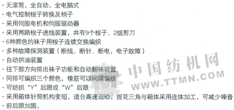 本公司最新開(kāi)發(fā)的兩路三色全電腦雙針筒棉襪機(jī),專業(yè)制造平紋、羅紋正反提花與三色提花的男裝與女裝襪。