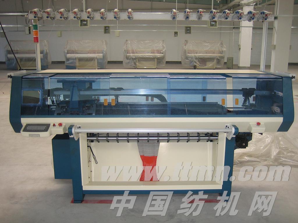機(jī)械規(guī)格及技術(shù)參數(shù): 型號(hào):RG-52T/J 針床:鋼片插入式,損壞可換 編織:52英寸(132公分)針距:7.12.14.16針/每英寸編織速度:最高每秒1.2公尺,32段速選擇,程式指令控制編織系統(tǒng):?jiǎn)螜C(jī)頭,機(jī)頭裝置雙系統(tǒng)編織三角:復(fù)合式設(shè)計(jì),每口系統(tǒng)皆能同時(shí)執(zhí)行成環(huán)+吊目+不織翻針三角:復(fù)合式設(shè)計(jì),每口系統(tǒng)皆能將織片由前翻后床或后翻前床及前床后床同時(shí)翻且不受方向限制度目三角:每個(gè)度目接受步進(jìn)式電子馬達(dá)控制,設(shè)有32段可單度選擇的度目,每段度目自00-166度選擇織目的疏密選針系統(tǒng):每口針織系統(tǒng)各裝置4組特殊精密的選針器,且每組選針器皆能在機(jī)頭外卸裝,易于維修和保養(yǎng)紗嘴系統(tǒng):2*8組紗嘴配置在4支雙面道軌的左右兩側(cè),可在針區(qū)任何區(qū)域切換紗嘴,備特特殊無(wú)虛線(xiàn)嵌花專(zhuān)用道紗嘴裝置(此裝置為有價(jià)配件)沉降片系統(tǒng):沉降片壓紗系統(tǒng),可依紗的材質(zhì)由人力來(lái)調(diào)沉降片的升降達(dá)到編織的效益針床移動(dòng)系統(tǒng):搖針床是由AC伺胡器電子馬達(dá)控制,在2英寸范圍內(nèi)的任何床位移動(dòng)皆有程控指令控制,而每段設(shè)右1/4,1/2,3/4段及微調(diào)等功能主卷布系統(tǒng):電腦程式指令由轉(zhuǎn)距電子馬達(dá)控制,設(shè)有32種拉力選擇,每種所需的拉力皆可在鍵盤(pán)上選擇副卷布系統(tǒng):電腦程式指令由轉(zhuǎn)距電子馬達(dá)控制,設(shè)有32種拉力選擇,其拉力張開(kāi)開(kāi)張有電腦式控制(此裝置為有價(jià)配件)機(jī)頭驅(qū)動(dòng)系統(tǒng):AC伺服電子馬達(dá)控制,驅(qū)動(dòng)齒型皮帶而帶動(dòng)機(jī)頭,設(shè)有32段式速度選擇,編幅可自由設(shè)定安全停機(jī)裝置:斷紗.結(jié)頭.落布.浮布.布倒.移床不當(dāng).沉降片位置不當(dāng).撞針角.紗線(xiàn)過(guò)量.片數(shù)到達(dá)皆全自動(dòng)停機(jī)電腦控制箱:由鍵盤(pán)直接輸入資料或由3.5英寸磁盤(pán)輸入記憶容量:1024*1096圖案長(zhǎng)度或?qū)挾瓤扇我庹{(diào)整資料存儲(chǔ):電腦顯示語(yǔ)言:中文,英文為標(biāo)準(zhǔn),另外可加入其他軟件(有價(jià)軟件為選用配件)電源:AC單相220伏特,耗電量2.4KVA