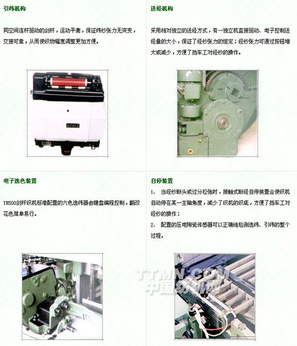YR500劍桿織機(jī)是采用了電腦輔助設(shè)計(jì)、數(shù)控機(jī)床精密加工的新一代織機(jī),該機(jī)型結(jié)構(gòu)緊湊、功能齊全、操作簡(jiǎn)便??棛C(jī)重量分布均勻,高速運(yùn)轉(zhuǎn)部位受力均衡,大大降低了織機(jī)運(yùn)轉(zhuǎn)過(guò)程中的震動(dòng),是織造行業(yè)的首選產(chǎn)品。 織機(jī)的傳動(dòng)由主電機(jī)通過(guò)單根V帶傳動(dòng)電磁離合制動(dòng)器,驅(qū)動(dòng)筘座及劍桿的運(yùn)動(dòng)。同時(shí),由微處理器檢測(cè)織機(jī)的運(yùn)轉(zhuǎn)情況,控制電磁離合器的吸合與制動(dòng)。 人機(jī)工程學(xué)??棛C(jī)運(yùn)用了人機(jī)工程學(xué)設(shè)計(jì)原理,便利了擋車工的操作,織機(jī)的所有功能皆由按鈕控制,液晶數(shù)字顯示器顯示,信號(hào)燈顯示斷緯 、斷經(jīng)等停車故障,所有這些都方便了織機(jī)的操作與維護(hù);加上連續(xù)不斷的氣流清除附在劍桿上飛花、雜質(zhì)、保證了織物的品質(zhì)。 |