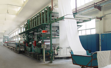 平幅進(jìn)布→透風(fēng)→MH/H564B三輥軋車→繃布輥(14只)→MH/H564C三輥軋車→繃布輥(10只) →浸漬槽→M1483B二輥軋車→MA/H121D布鋏拉幅機(jī)→M1484B三輥軋車→HM511F直輥槽→M1483A二輥軋車 →M1532水洗機(jī) →(M1483B二輥軋車→M1513D水洗)×5 →M1483A二輥軋車→M1515水洗機(jī)→M1484B三輥軋車→HM2655B烘筒烘燥機(jī)→平幅落布