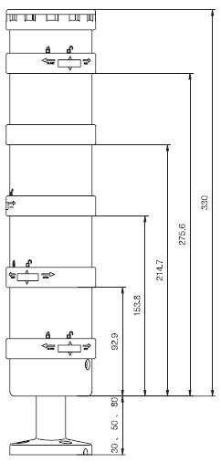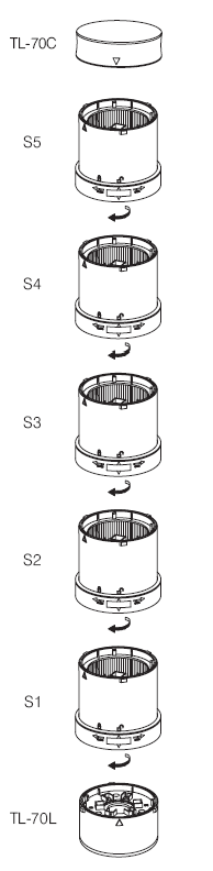■ 一臺警示燈最多能組合五個(gè)單元:五個(gè)光組件或四個(gè)光組件和一個(gè)聲組件組成