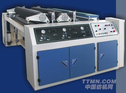 第二組加壓機(jī)構(gòu)(靠烘房一側(cè))由上漿輥、壓漿輥兩輥組成,均為丁腈橡膠輥,上漿輥為高硬度橡膠輥(SHA98)。壓漿輥采用氣缸雙側(cè)同步加壓,壓力:0-40KN,具有兩級(jí)切換和線性加壓功能。