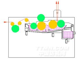 整個(gè)烘燥裝置與漿槽的排濕采取一整體結(jié)構(gòu)的排濕汽罩,采用不銹鋼制作,風(fēng)機(jī)對(duì)熱濕空氣強(qiáng)迫排風(fēng)。