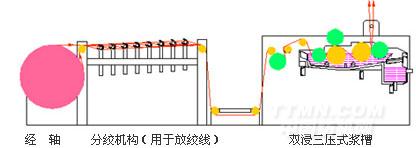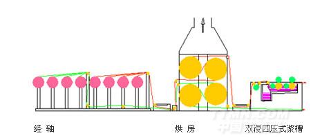 三輥式引紗+雙浸四壓式上漿機(jī)構(gòu)示意圖