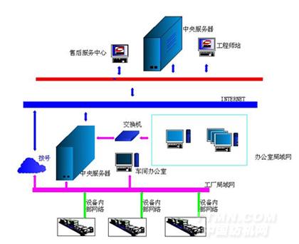 多臺(tái)設(shè)備局域聯(lián)網(wǎng)及通過(guò)調(diào)制解調(diào)器和我們的服務(wù)部門(mén)連接的示意圖
