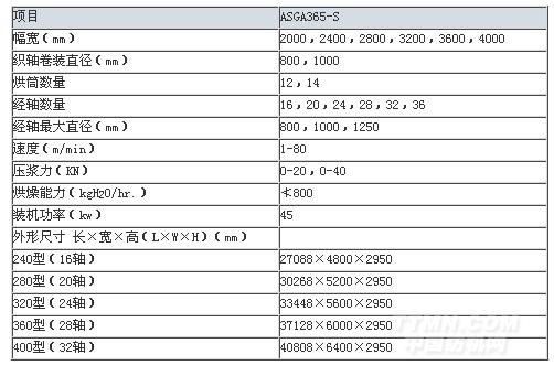ASGA365型兩單元傳動(dòng)雙漿槽漿紗機(jī)主要規(guī)格及技術(shù)參數(shù)