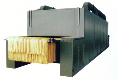 本機(jī)操作方便,安放紗桿在進(jìn)紗架內(nèi),由機(jī)件帶人烘房內(nèi)烘干運(yùn)至尾端架內(nèi),收紗后紗桿放在回送運(yùn)輸帶上,送至進(jìn)紗處,可連續(xù)循環(huán)烘干。