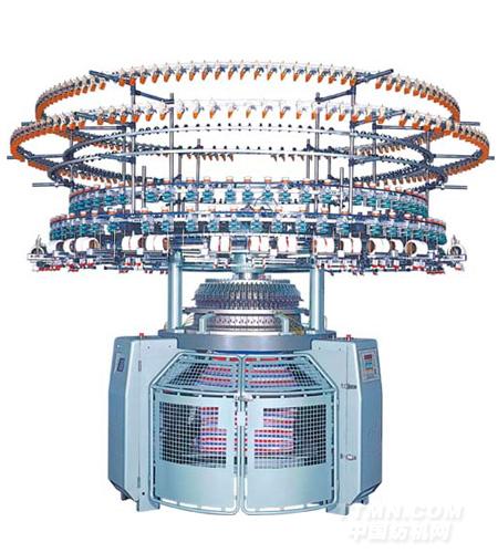 金天梭牌單面電腦自動(dòng)變色針織機(jī),采用立式調(diào)線頭,不易積花絮。