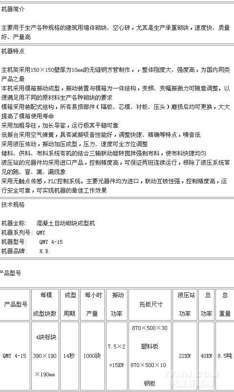 惠邦機(jī)械(營(yíng)口)有限公司產(chǎn)品介紹: 砌塊機(jī)QMY4-15技術(shù)規(guī)格砌塊機(jī)QMY4-15 " />