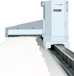 本機為往復(fù)式自動抓棉機,適用于抓取各種等級的原棉、棉型化纖及76mm以下的中長纖維,是開清棉聯(lián)合機組的第一道機臺。智能化的運行小車,能對雙品種原棉分別實行精細抓棉,被抓取的棉束被氣流輸送至后方機臺作進一步處理。