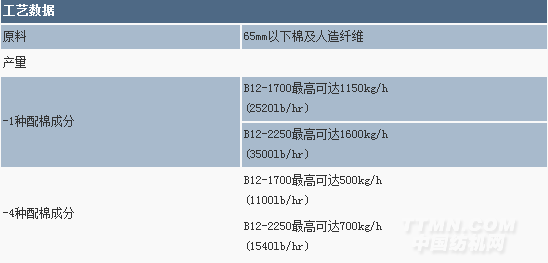 ●加工1種配棉成分且抓棉小車的工作寬度是2250mm時(shí),最高產(chǎn)量為1600kg/h。