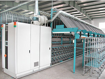 HY-12S,W1 羅拉安裝在橫梁上,假捻器豎直放置,熱箱、冷軌角度相應(yīng)改變,既保證直線型絲路,又減小整機(jī)寬度。有網(wǎng)絡(luò)裝置、定長(zhǎng)定重裝置和并絲裝置供用戶選用。