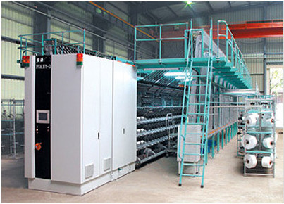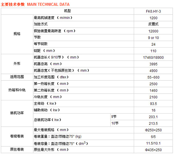 FK6.HY-3型高速彈力絲機采用皮圈假捻方式,其適紡范圍為33~660dtex,最高機械速度為1200m/min。