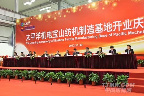 TTMN訊 2012年11月30日上午,太平洋機(jī)電(集團(tuán))有限公司在上海寶山區(qū)隆重舉行太平洋機(jī)電寶山紡機(jī)制造基地開(kāi)業(yè)慶典。