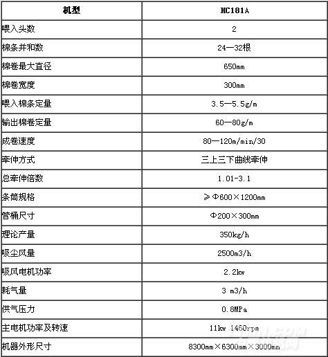 HC181A條并卷聯(lián)合機(jī)是一種新型條并卷機(jī),作為精梳機(jī)準(zhǔn)備設(shè)備,其用途是使經(jīng)過預(yù)并后的棉條進(jìn)一步牽伸、并合,混合成片狀后呈棉層輸出,提高纖維的伸直度及平行度,并卷繞成具有一定規(guī)格、重量及密度的棉卷,供精梳機(jī)使用。