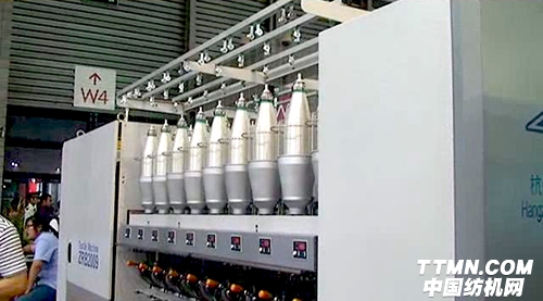 沈先生告訴記者,鑒于現(xiàn)在玻璃纖維市場發(fā)展快,勢頭猛。杭州長翼重點推出了新近研發(fā)的ZR2012F型玻璃纖維復合捻線機。該機控制系統(tǒng)采用群控與單控相結合,大卷裝高速度,絞盤羅拉卷取,提高了捻度均勻性,工藝上更加成熟。同時各過道采用氧化鋁滾輪裝置,突破玻纖捻線所產(chǎn)生毛羽,捻線采用氣流罩,解決環(huán)境帶來廢紗及人身安全防護。設有斷紗自停裝置(斷紗時復捻錠子脫離龍帶自動剎車,初捻單元電機停止工作。解決斷紗產(chǎn)生油污問題),無需人員管理,省人工。