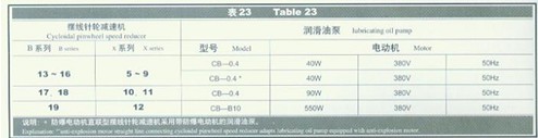 2.法蘭式立裝擺線針輪減速機(jī)的潤(rùn)滑油泵見表23.