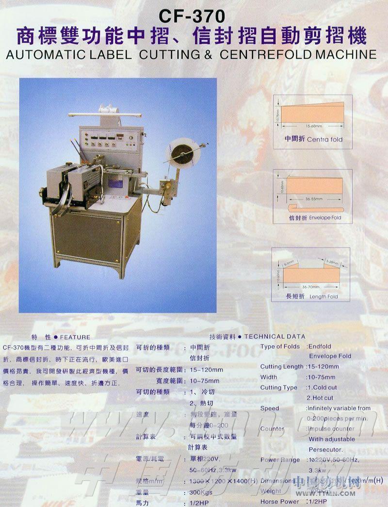 CF-370商標(biāo)雙功能中摺、信封摺自動剪摺機 -- 臺灣優(yōu)耀企業(yè)有限公司