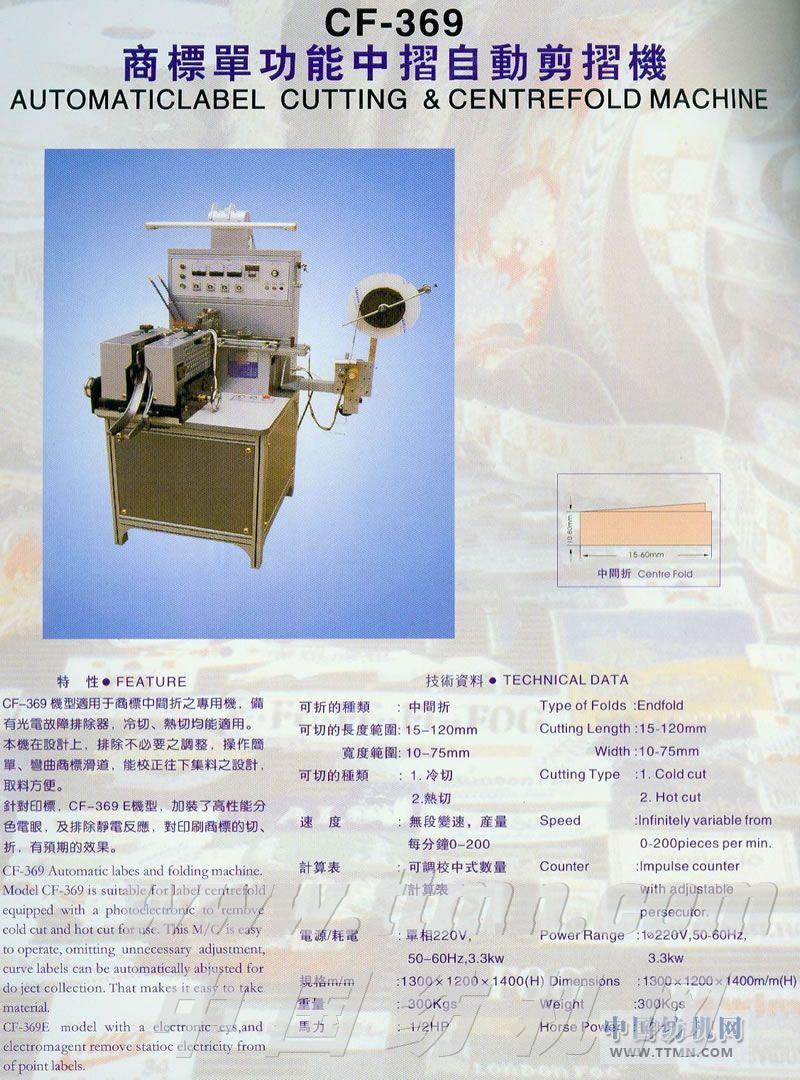 CF-369商標單功能中摺自動剪摺機 -- 臺灣優(yōu)耀企業(yè)有限公司