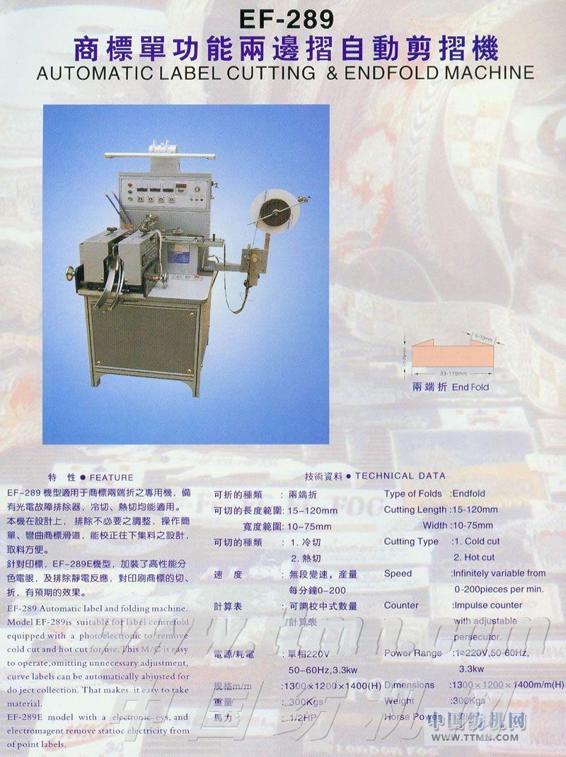 EF-289商標(biāo)單功能兩邊摺自動剪摺機(jī) -- 臺灣優(yōu)耀企業(yè)有限公司