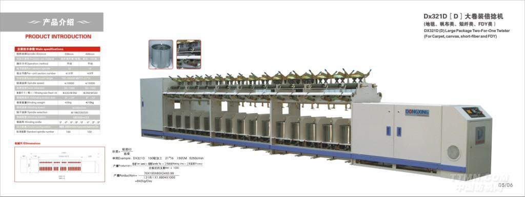 DX321D大卷裝倍捻機 (地毯,帆布類, 短纖類,F(xiàn)DY類)詳細參數(shù)請登陸www.zjdxfj.cn