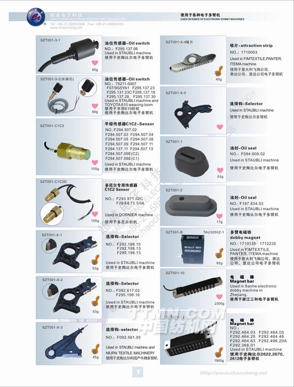 超誠(chéng)電子科技有限公司在產(chǎn)品開發(fā)領(lǐng)域:成功研發(fā)出提花機(jī)電磁鐵、抬緯電磁鐵、電子多臂機(jī)電磁鐵、儲(chǔ)緯器電磁針、接近開關(guān)、緯紗傳感器、光電開關(guān)、光電探緯器、固態(tài)繼電器等產(chǎn)品,部分產(chǎn)品獲得了國(guó)際UL認(rèn)證、CE認(rèn)證等,受到了國(guó)部委的多次嘉獎(jiǎng)。特別是本公司的高頻率提花機(jī)電磁鐵(SZT-003)、電子多臂機(jī)電磁棒(SZT-001-20)、節(jié)能型提花機(jī)組件(M5)、新型氣閥電磁鐵(TAU-2536),成為了國(guó)家商新技術(shù)產(chǎn)品,并通過(guò)了上海市高新技術(shù)成果轉(zhuǎn)化,得到了國(guó)家重點(diǎn)產(chǎn)品保護(hù),本公司也被確認(rèn)為全國(guó)質(zhì)量、信譽(yù)雙保障示范企業(yè),中國(guó)質(zhì)量誠(chéng)信委員會(huì)AAA級(jí)質(zhì)量誠(chéng)信會(huì)員,中國(guó)質(zhì)量誠(chéng)信促進(jìn)會(huì)質(zhì)量誠(chéng)信消費(fèi)者(用戶)信得過(guò)單位。