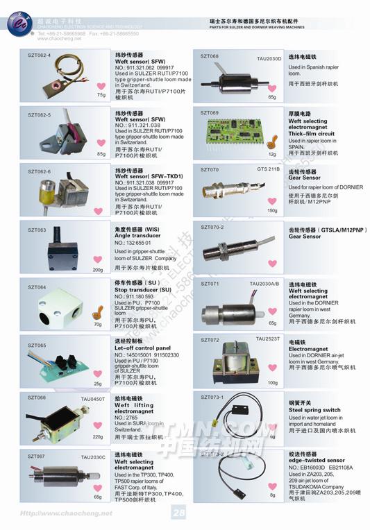 瑞士蘇爾壽和德國多尼爾織布機配件