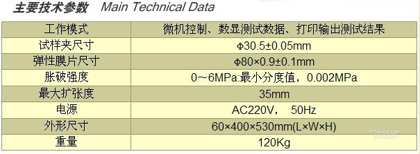 用于各種紡織品、非織布、皮革等材料,在經(jīng)緯及各個(gè)方向同時(shí)受力(彈性膜片法)時(shí),擴(kuò)張力和擴(kuò)張度的性能測(cè)定。