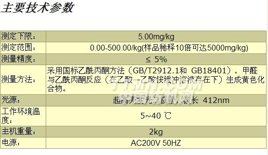 用于測定各種紡織品中甲醛的含量。