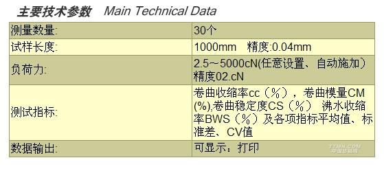 用于測(cè)定變形絲(滌綸、錦綸、丙綸)的卷曲收縮性能。測(cè)試過(guò)程中具有自動(dòng)變負(fù)荷、自動(dòng)加負(fù)荷、自動(dòng)計(jì)時(shí)、自動(dòng)測(cè)量長(zhǎng)度及自動(dòng)校零功能。