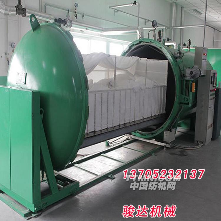 江蘇省金湖縣駿達(dá)機(jī)械有限公司吸收國外同類產(chǎn)品的精華而研制的新型自動真空蒸紗機(jī),以下簡稱“蒸紗機(jī)”具有全自動化控制,生產(chǎn)效率高等優(yōu)點。成為目前理想的給濕定型設(shè)備。它適用于以棉、麻、毛、真絲、化纖等為原料的紡織單位,其用途是將具備織造條件的絲線在合并加捻后進(jìn)行給濕定型,即在多次真空和一定溫度范圍下增加濕度,降低紗線伸縮率,改善產(chǎn)品手感、光澤度,提高紗線張力、強(qiáng)度,同時消除靜電及各部分的不平衡應(yīng)力。該蒸紗機(jī)的使用特點是:適用范圍廣泛,定型后產(chǎn)品的物理性能如:強(qiáng)力、伸長度等不受影響,同時使針織效率提高10%;整經(jīng)、織造效率提高15%;又使染色布均勻,還可以降低失重率.