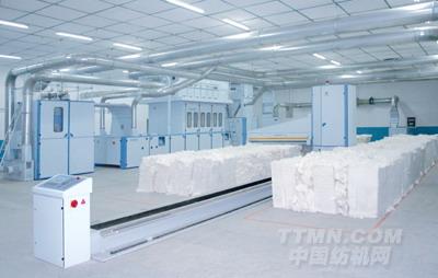 鄭州清梳聯(lián)成套設(shè)備以精細(xì)抓取、均勻混合、自由開松、早落少碎、薄喂輕梳、結(jié)雜短絨和細(xì)絨長絨兼顧的研發(fā)宗旨,采用抓、開、混、清、梳一體化高效短流程配置。抓棉機(jī)采用防纏繞雙向刀刃的雙打手順向抓棉與打手轉(zhuǎn)速、抓棉深度、行走速度的無級變頻調(diào)速相結(jié)合,實(shí)現(xiàn)精細(xì)抓取;切向喂給與自由開松的單、雙軸流開棉,完成早落少碎、高效除雜;不同喂入同時(shí)輸出的均勻混棉機(jī)與梳針鋸齒分梳、負(fù)壓除雜有機(jī)結(jié)合的清棉機(jī)一體化創(chuàng)新,有效穩(wěn)定后道工序質(zhì)量、杜絕后道工序顏色差別,去除細(xì)小雜質(zhì)和帶纖維的籽屑,不傷少傷纖維,減少棉結(jié)的產(chǎn)生。在線、科學(xué)、靈活的落棉調(diào)節(jié)系統(tǒng),提高產(chǎn)品的制成率,為用戶提供效益最大化。抓、開、混、清、梳一體化的連續(xù)喂給系統(tǒng),確保了工藝運(yùn)轉(zhuǎn)率100%,穩(wěn)定生條定量,提高條干水平。