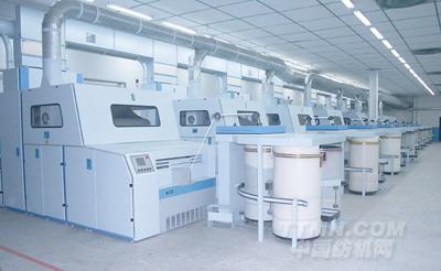 青島清梳聯(lián)博采眾長,以薄喂輕打、早落少碎、棉結(jié)雜質(zhì)短絨兼顧為理念,采用抓、開、混、清、梳的高效短流程設(shè)計(jì)。抓棉機(jī)抓取深度和行走速度變頻控制,無級調(diào)速,實(shí)現(xiàn)精細(xì)抓??;高效除雜的單軸流開棉機(jī),著重加強(qiáng)預(yù)開清能力,柔和清除雜質(zhì),除雜效率在25%~30%之間,做到了早落少碎,減輕了后道清棉機(jī)的負(fù)擔(dān),清棉機(jī)實(shí)現(xiàn)“輕打”,少纖維損傷,減少了短絨和棉結(jié)的產(chǎn)生,提高制成率。流程中無凝棉器設(shè)計(jì),完全依靠氣流輸送棉流,實(shí)現(xiàn)無間斷連續(xù)喂棉;風(fēng)機(jī)和羅拉打手全部采用變頻調(diào)速,工藝運(yùn)轉(zhuǎn)效率100%,耗電可以節(jié)約30~40%?! ∽鳛槔吓剖崦迿C(jī)生產(chǎn)基地,青島宏大推出的JWF1205型梳棉機(jī),實(shí)際產(chǎn)量可達(dá)100公斤/小時(shí),適用于氣流紡,三刺輥設(shè)計(jì)、梳理區(qū)面積增加20%、先進(jìn)的CAN通訊技術(shù)和伺服系統(tǒng)的應(yīng)用是實(shí)現(xiàn)高產(chǎn)高速的保證;JWF1207型梳棉機(jī)單刺輥結(jié)構(gòu)、順向給棉,適用于環(huán)錠紡,產(chǎn)量最高可達(dá)100公斤/小時(shí)。JWF1205型、JWF1207型高產(chǎn)梳棉機(jī)已經(jīng)成為青島宏大主打機(jī)型。