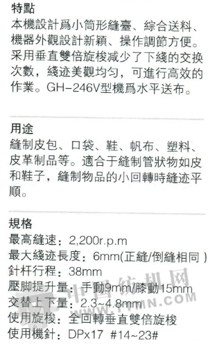 GH-246 GH-246V 簡型單針平縫綜合送布縫紉機