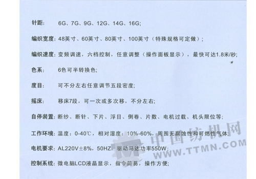 該系列設(shè)備采用電腦控制系統(tǒng),可變頻調(diào)速,六檔控制,6色可半轉(zhuǎn)換色,實(shí)現(xiàn)高檔羅紋織物的高精密度編織。適用于腈綸、混紡、紗線等原料編織成衣領(lǐng)、袖口、服裝下擺、鞋套等服裝附件.