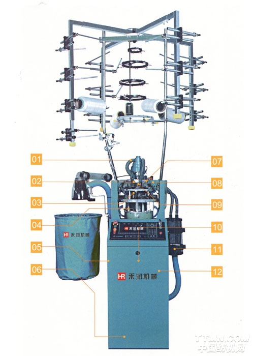 “禾潤”牌HR45E7型絲襪機(jī)是由電腦控制的具有四路標(biāo)志系統(tǒng)的單針筒提花絲襪機(jī)。該機(jī)采用獨(dú)立抽風(fēng)機(jī)或中央抽風(fēng)系統(tǒng)進(jìn)行織物牽拉,機(jī)器配備抗扭裝置。針筒轉(zhuǎn)動(dòng)采用伺服電機(jī)直接驅(qū)動(dòng)以減少轉(zhuǎn)動(dòng)鏈及傳動(dòng)誤差,由步進(jìn)馬達(dá)控制針筒升降,可產(chǎn)生不同疏密、加壓潤滑油用以潤滑針織、生克和選針片。電腦控制襪子的制作全過程、款式和品質(zhì)。該機(jī)可使用合成纖維、人造纖維、棉以及裸氨綸和包覆紗等原料生產(chǎn)絲襪產(chǎn)品,包括連褲襪、九分褲襪、棉褲襪等多種絲襪產(chǎn)品。
