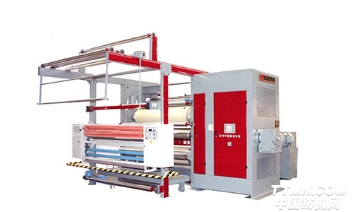 ·織物經(jīng)過(guò)張力控制進(jìn)入中間加熱鏡面輥與下方的無(wú)級(jí)調(diào)壓輥之間,對(duì)織物進(jìn)行第一次軋光后,織物在經(jīng)過(guò)冷卻水輥預(yù)縮、橡膠彎輥開(kāi)幅后,進(jìn)入加熱鏡面輥與上方的無(wú)級(jí)調(diào)壓輥之間進(jìn)行第二次軋光,最后織物由出布裝置收卷或落布。該技術(shù)可使織物一次軋光得到普通軋光機(jī)加工四遍的效果。