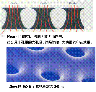 165ED是通用的Nova網(wǎng),有著極廣的適用性。首要選擇是半色調(diào)和幾何圖形,精細線條和四色印染。