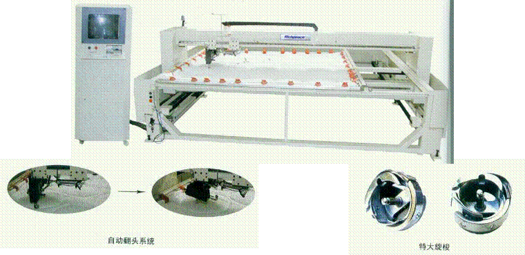 4、自動(dòng)翻頭技術(shù),絎完一床物料后,機(jī)器自動(dòng)翻頭,方便更換新料框