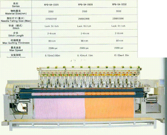 絎繡機(jī)廣泛應(yīng)用于服裝、箱包及各種高檔床上用品,例如、床墊、床罩、被子、枕套、睡袋等。